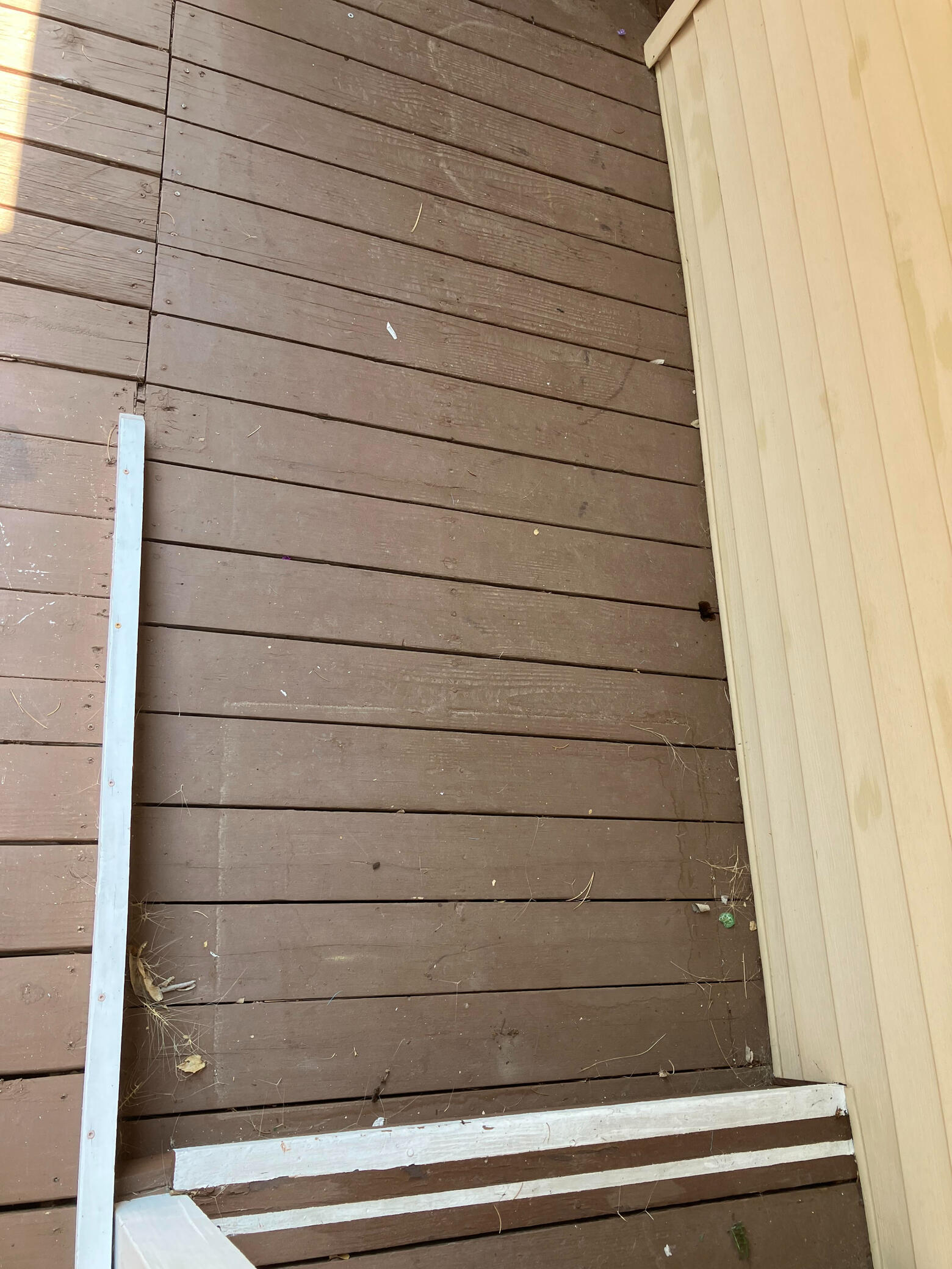 My pressure washing services include surface cleaning and trash can cleaning. Surface cleaning includes deck cleaning and concrete cleaning. For deck cleaning I use a low pressure and a light cleaner to clean the surface while not stripping the paint. Concrete cleaning can include oil stain removal, and cleaning the surface of any tire marks or mold. With the cleaners I use, most of the stains will lighten or disappear altogether.